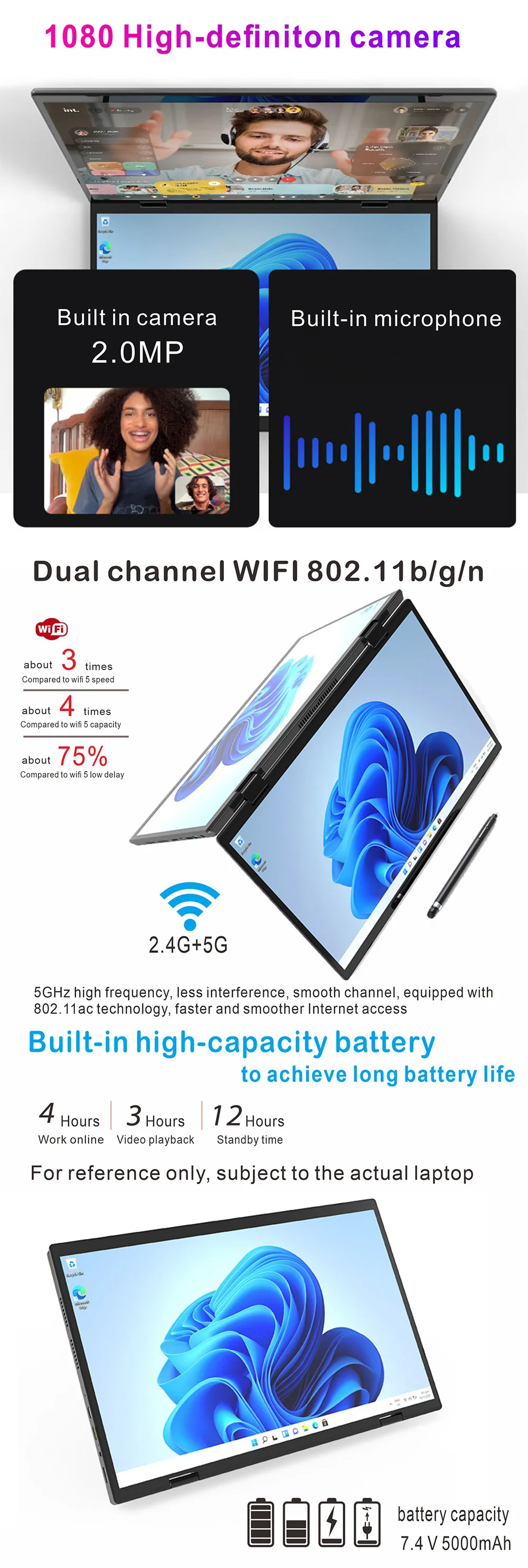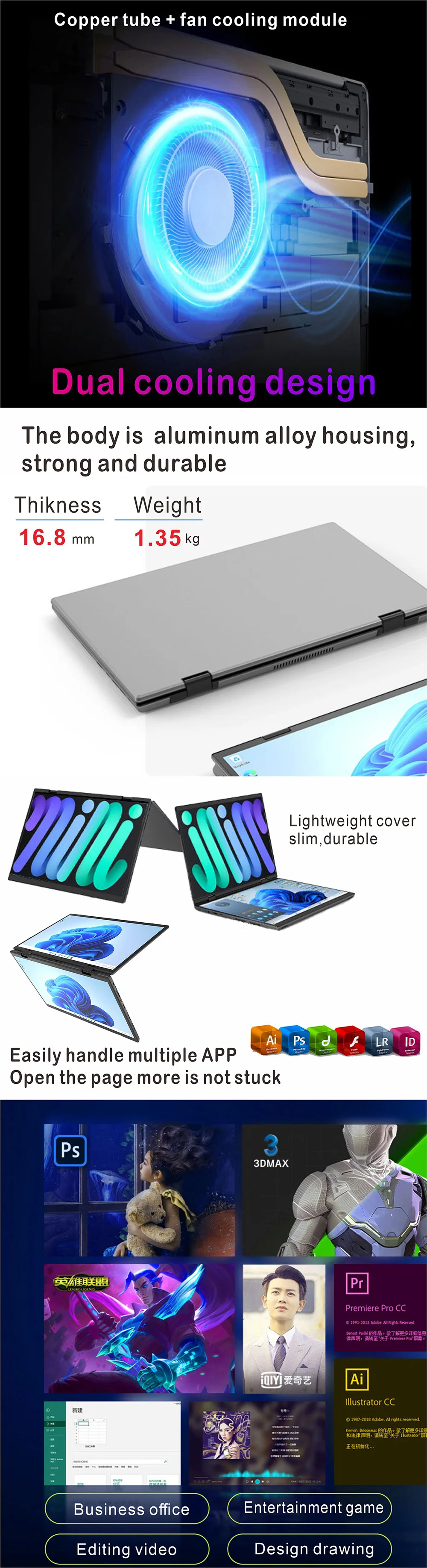 Dual screen 14.1 inch IPS Touh screen,2240*1440 pixels 16:10,Support 10 points touch Capacitive screen |